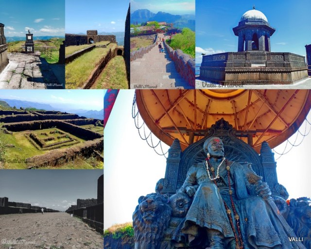 Shivaji’s main palace now contains fragmented ruins of three watchtowers overlooking Ganga Sagar lake. There is a royal bath with good drainage systems, Granaries, Secret chamber for discussions, Execution place called Takmak Tok where the prisoners were executed by pushing off the cliff, Shivaji’s Coronation place, Ruins of Market place where the people can shop horseback. One side of the Market place has the statue of Shivaji, the path on the other side leads to Jaghadishwar Mandir, his samadhi and his Dog’s samadhi.