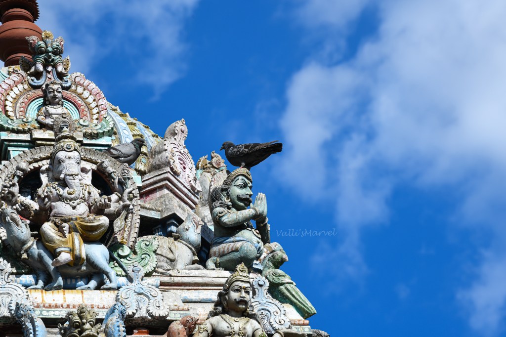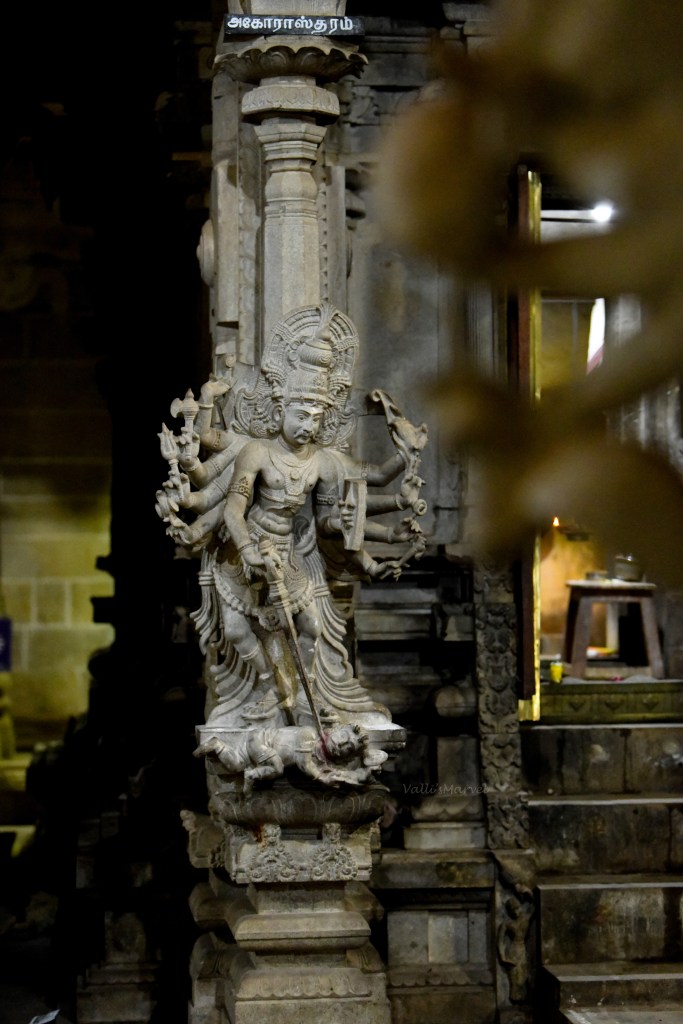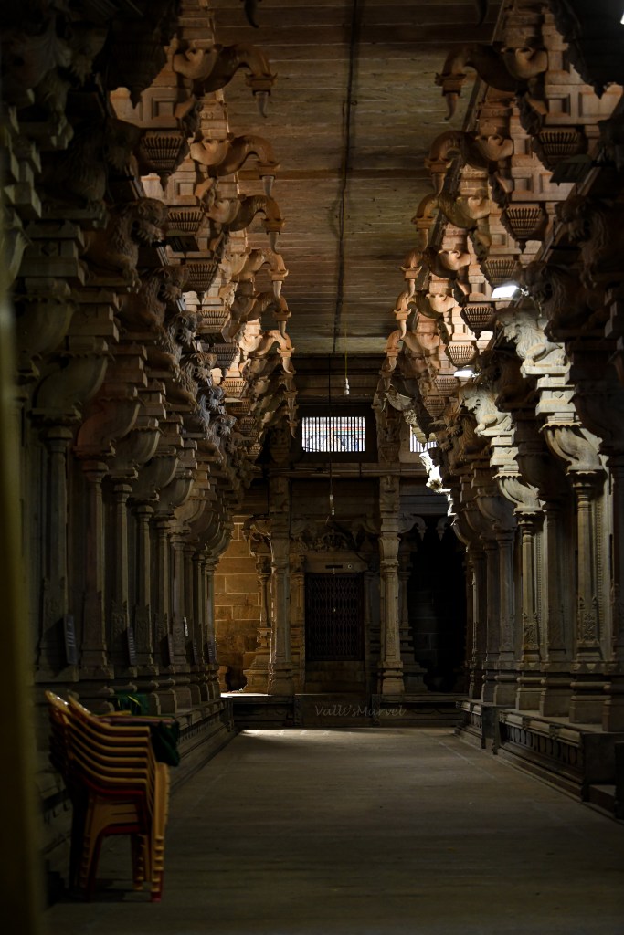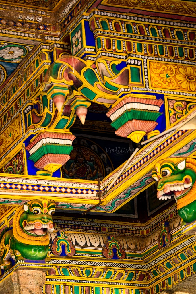 One can see both the Vimanam as well as the Sanctum Sanctorum together from the front Mandapa, which is a unique feature in this temple.