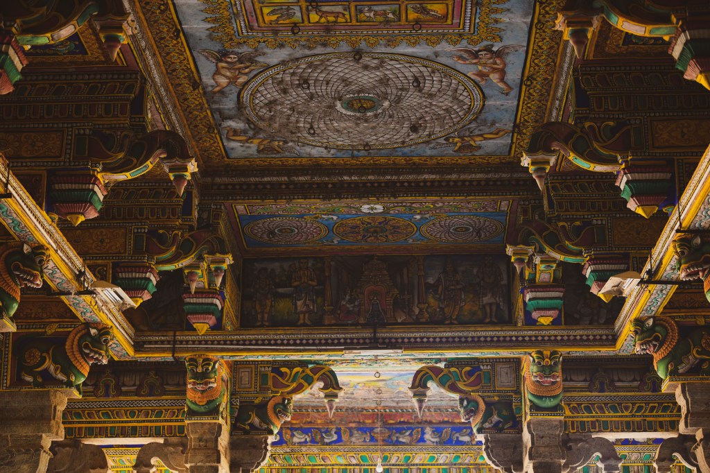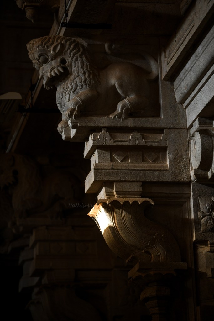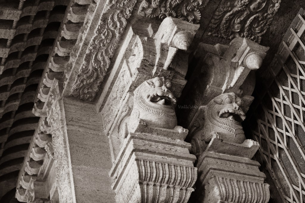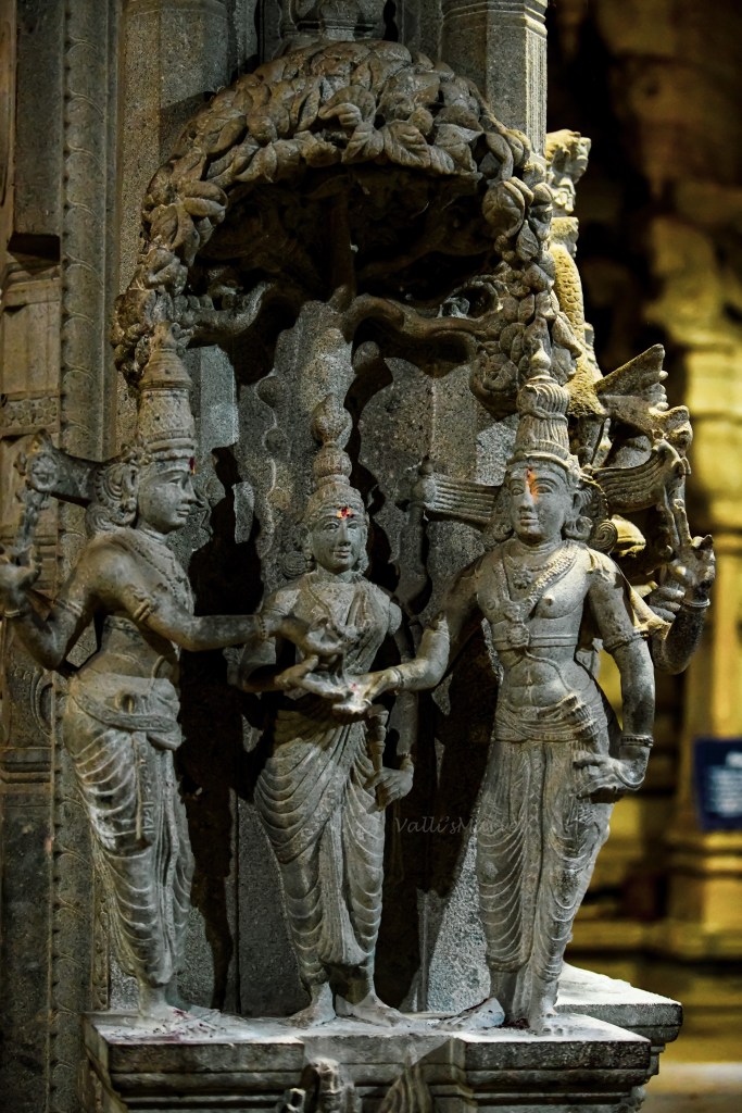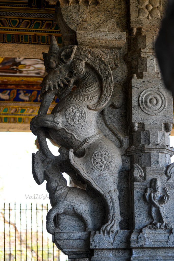 One can see both the Vimanam as well as the Sanctum Sanctorum together from the front Mandapa, which is a unique feature in this temple.