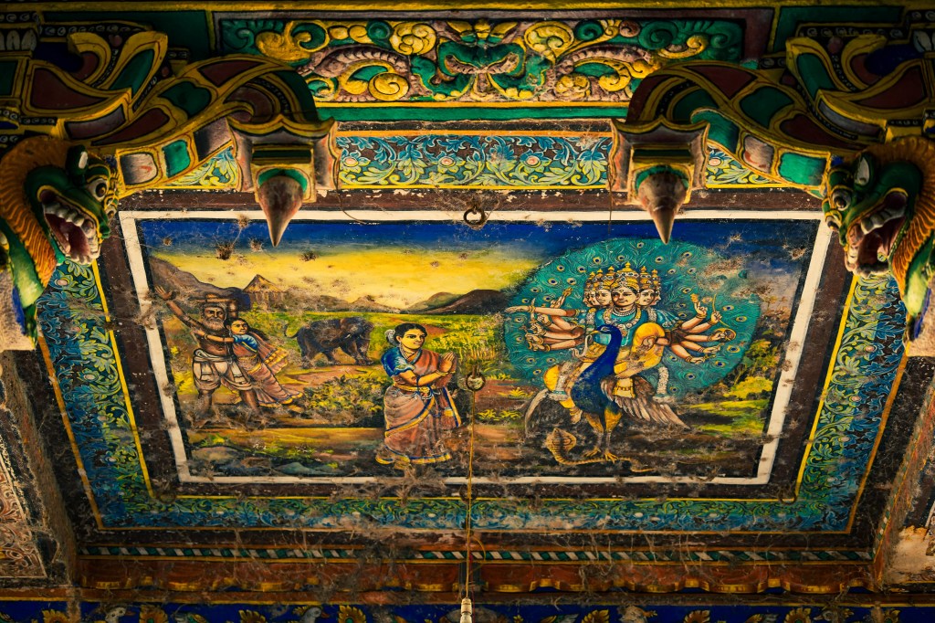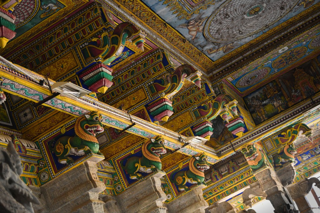 Lord Karthikeya, and his consorts Valli and Dheivanai all three sit in the peacock unlike other temples where only Karthikeya sits in the peacock .